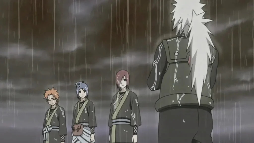 Hanzo citó a Yahiko y Nagato a una supuesta reunión de paz, pero era una emboscada. Es allí que secuestraron a Konan y la usaron como moneda de cambio. Hanzō le dio a Nagato un ultimátum letal:
