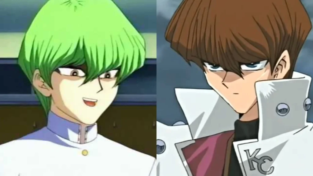 - Algunos personajes tenían diseños distintos, como Kaiba, con pelo verde y una actitud más abusiva.